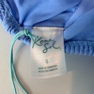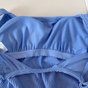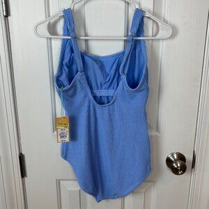 Kona Sol Full Coverage Pucker Textured Square Neck One Piece Swimsuit Small Blue