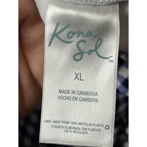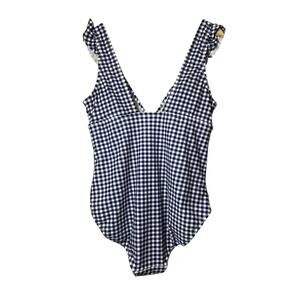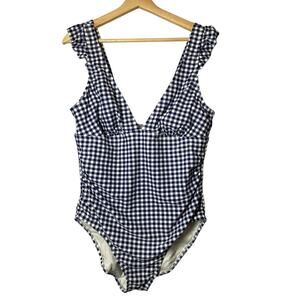 Kona Sol Gingham One-Piece Swimsuit Size Large Ruffle Sleeve Navy Blue White