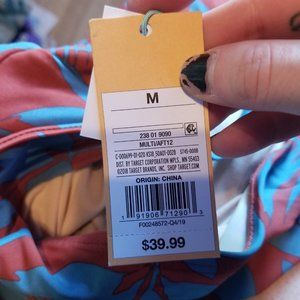 Kona Sol High Coverage One Peice Red Blue Palm Pattern Bathiing Swim Suit NWT