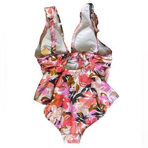 Kona Sol High Coverage One Piece Floral Swim Suit Size Large Womens Pink Coral