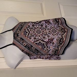 Kona Sol High Neck Medalion/Floral Print Tankin Top