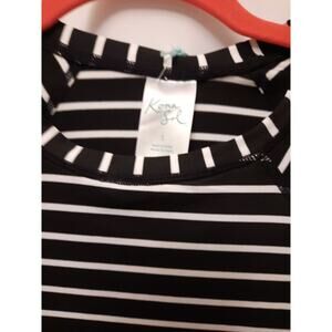 Kona Sol Large 12-14 Black & White Striped LS Cropped Rash Guard Swim Shirt nwt