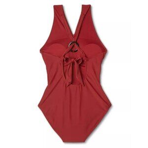 Kona Sol Large 12-14 Dark Red Ring Detail Ruched Full Coverage 1 Piece Swimsuit