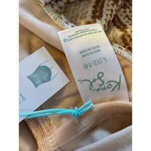 This Kona Sol one-piece swimsuit offers high coverage and comfort, perfect for beach outings. The swimsuit features padded, adjustable straps for a personalized fit and is brand new with tags. Ideal for those seeking style and support.