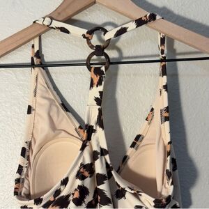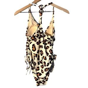 Kona Sol Leopard Print One Piece Beige Swimsuit Women’s Side Ruching S.