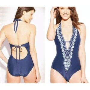 Kona Sol Medium Coverage One Piece Swim Suit Womens Size S Blue White