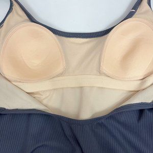 Kona Sol NEW Gray Tropical Floral Ribbed One Piece Swimsuit Scoop Back - LARGE