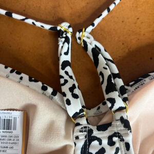 Kona Sol NWT White Leopard Print Racerback Twist Middle Bikini Top Size SM(4-6)