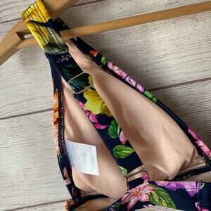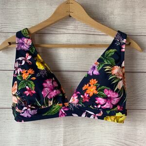 Kona Sol Navy Blue and Colorful Floral Bikini Top Adjustable Straps Size Small