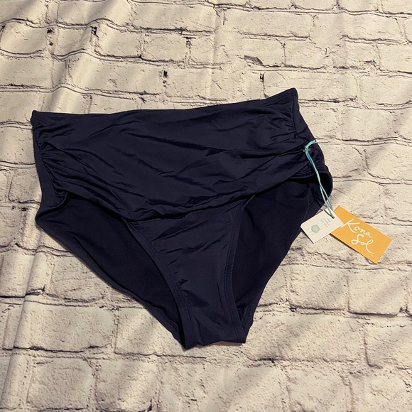Kona Sol Navy Swim High Rise Bottom, Size M, NWT