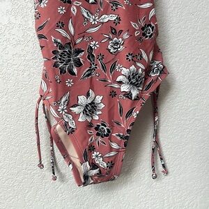 Kona Sol One Piece Bathing Suit Floral Pink Black Size Medium