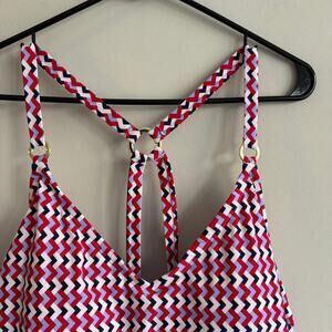 Kona Sol One Piece Swim Suit Red White Blue Gold Hardware USA Patriotic 18 NWT