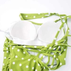 Kona Sol One Piece Swimsuit Polkadot Small Women, Green and White Bathing Suit. Excellent preowned condition. Suit has soft cups.