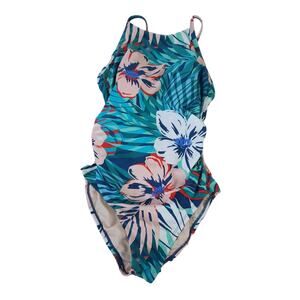 Kona Sol One Piece Swimsuit Small Floral Bathing Suit Tropical Flowers Green