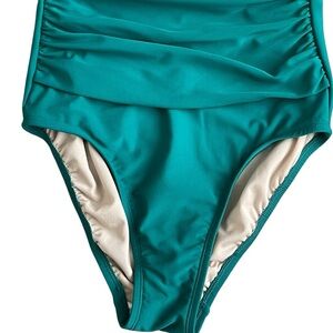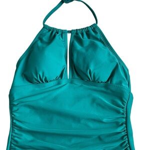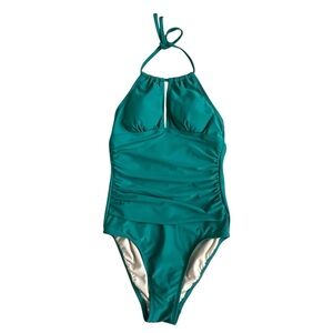 Kona Sol One Piece Swimsuit Women’s Size S Teal Halter Neck Slimming Ruched