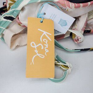 Kona Sol One Piece Swimsuit Women's Small 4-6 Multicolor Belted V-Neck Leaf