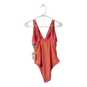 Kona Sol Peach One-Piece V-Neck Swimsuit 14W New