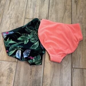 Kona Sol Peach Tropical Floral High Waist Bikini Swimsuit Bathing Bottoms Small