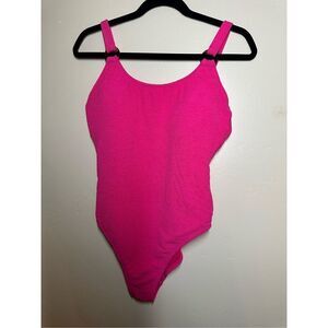 Kona Sol Pink Ribbed One Piece Swimsuit With Tortoise Rings Size Small