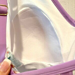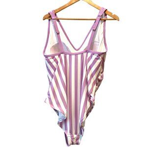 Kona Sol Plus One Piece Purple Stripe Print V-Neck High Leg Swim Suit 20W Plus Adjustable