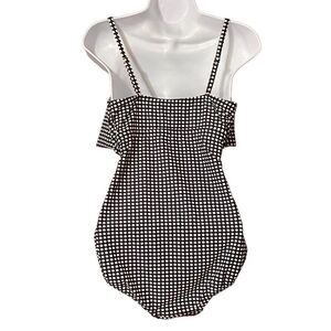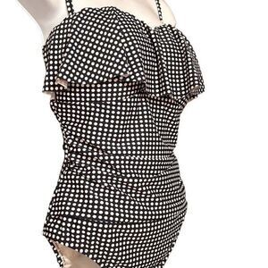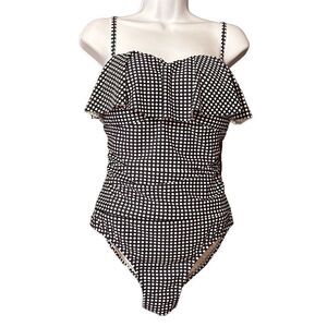 Kona Sol Polka Dot Swimsuit One Piece Ruffle Navy Blue White Size Large Preloved