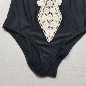 Kona Sol Womens Size Small Swimsuit Crochet Lace Trim Plunge Black Cottagecore Beach Cruise