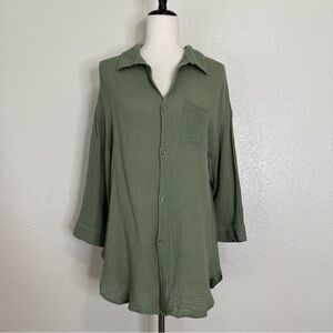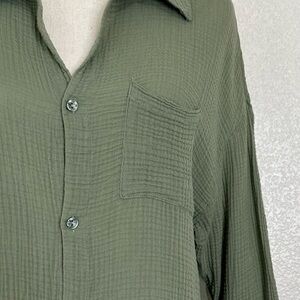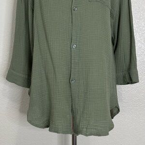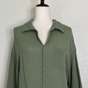 Kona Sol Sage Gauze Button Down Long Sleeves Coverup Shirt, Sz Small