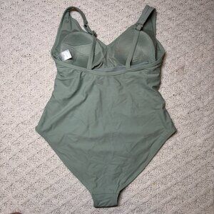 Kona Sol Sage Green One-Piece Swimsuit with Plunge Neck – Women’s 18W nwot