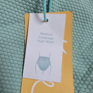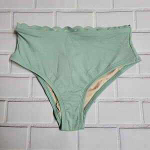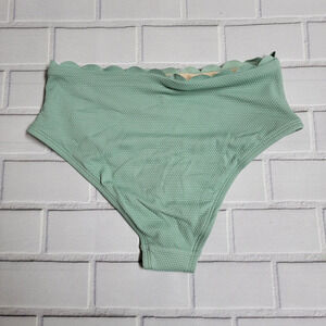 Kona Sol Scalloped Pique High Waist Bikini Bottoms Small Green