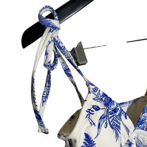“Elevate your aquatic-inspired style with this Shoulder Tie Medium Coverage One-Piece Swimsuit from Kona Sol. This one-piece swimsuit with a medium coverage design offers plenty of seat and torso coverage. Styled with tie shoulder straps, it showcases a blue tropical floral print on a white backdrop for a refreshing, botanical look. The stretchy fabric provides ease of movement, while the removable cups offer customizable coverage. Add cool sunglasses and flip-flops to complete your stylish swim look.”