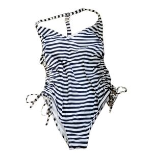 Kona Sol Side Cinch High Coverage One piece swimsuit Navy/ White Stripe Size XL