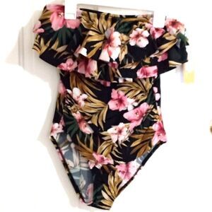 Kona Sol Strapless Double Flounce Floral Print High Coverage One Piece Swimsuit (Size M) - NEW!!!