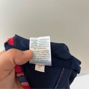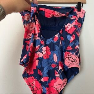 Kona Sol Strapless One Piece Navy and Pink Floral Swimsuit Medium