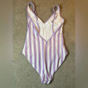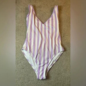 Kona Sol Striped One Piece Swimsuit Size Medium Purple White