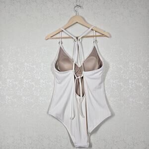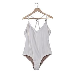 Kona Sol Swim Suit sz L Ivory Cream Ribbed Knit One Piece Medium Seat Coverage