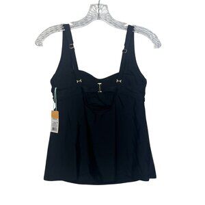 Kona Sol Swim Tankini Top Adjustable Straps Underwire Black Size Medium New