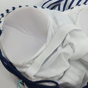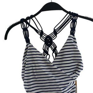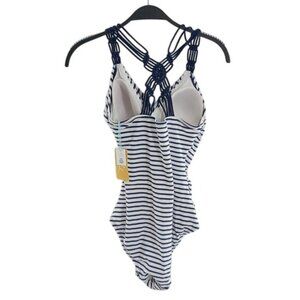 Kona Sol Swimsuit Blue White Striped One Piece Criss-Cross Back Womens Size S