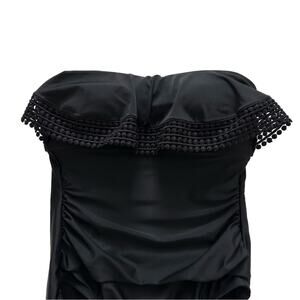 Kona Sol Swimsuit One Piece Black Crochet Flounce Strapless High Coverage Small