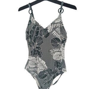 Kona Sol Swimsuit Tropical Leaf Print One Piece Bathing Suit Womens Size Small
