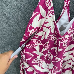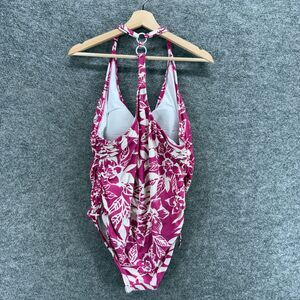 Kona Sol Swimsuit Women XL Purple Floral V-Neck Push Up Sleeveless One Piece