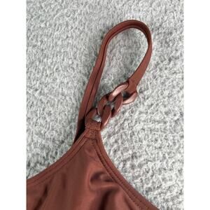 Kona Sol Swimsuit Womens Large Brown Padded Accent One Piece Medium Coverage NWT