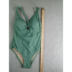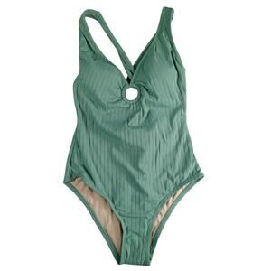 Kona Sol Swimsuit Womens Medium (8-10) One Piece Green Ribbed Padded Lined NWOT