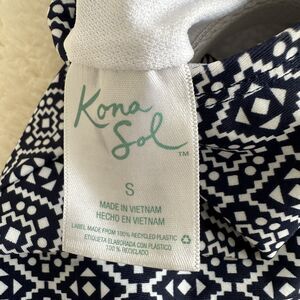 Kona Sol Tankini Swim Top Sz S Navy White Geometric Print Padded Halter Beach