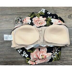 Kona Sol Tankini Swimsuit Top Ruffled Bandeau Removable Strap Floral Print Small