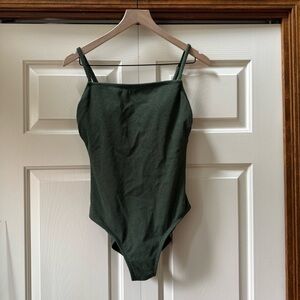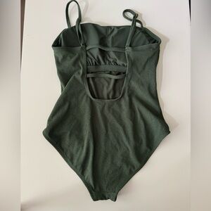 Kona Sol Textured One Piece Swimsuit High Square Neck Scoop Back Women’s size L