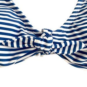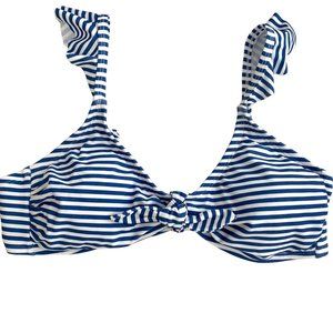 Kona Sol Tie Front Ruffle Shoulder Adjustable Strap Bikini Top Blue Stripe S L D