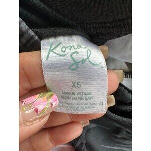 Kona Sol Tropical Palms Black Gray Halter Racerback Tankini Swim Top XS