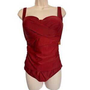 Kona Sol Tummy Control Padded Bra Size Large 12/14 Red Adjustable Strap NWT Swim
