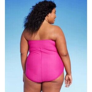 This is a Kona Sol Women's Bandeau Halter One Piece Swimsuit with Tummy Control in a plus size 22. The swimsuit features a flattering bandeau style top with a halter strap, designed to provide support and comfort while swimming or lounging by the pool. Made of 82% Nylon and 18% Spandex, this swimsuit is in a pretty pink color and includes tummy control for a more slimming and flattering fit. Perfect for women looking for a stylish and supportive swimsuit option for their next beach or pool outing.