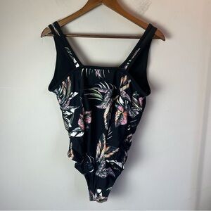 Kona Sol Women’s Black Floral One Piece Size 16W